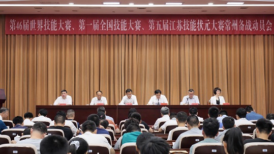 初秋时分,金桂含苞,技能备战,擂鼓呐喊。9月10日,常州市在行政中心群贤堂召开第46届世界技能大赛、第一届全国技能大赛、第五届江苏技能状元大赛备战动员会。国家人社部职建司副巡视员刘新昌,省财政厅副厅长沈益峰,省人社厅副厅长顾潮,省人社厅二级巡视员、职业能力建设处处长余强,常州市副市长杭勇,相关单位领导、职能部门负责人,承训单位、选手、教练共200余人参加了会议。会议由市人社局党组书记、局长嘉秀娟主持。