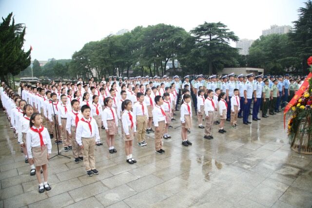 默哀毕,少年儿童面向烈士纪念碑高唱《我们是共产主义接班人》,并敬少年先锋队队礼。