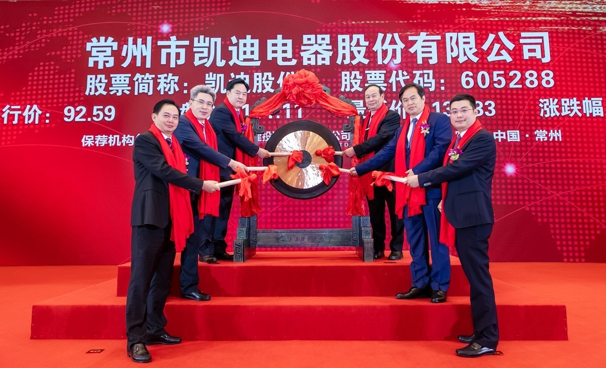 6月1日上午,常州市凯迪电器股份有限公司在上海证券交易所挂牌上市,股票简称凯迪股份,股票代码605288。上市仪式在常州经开区举行。