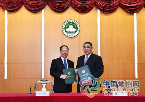 江苏省政府与澳门特别行政区政府在澳门签订关于联合筹建苏澳合作园区备忘录,江苏省省长石泰峰与澳门特别行政区行政长官崔世安日前代表双方签字,共同决定在江苏省常州市合作开发建设苏澳合作园区。