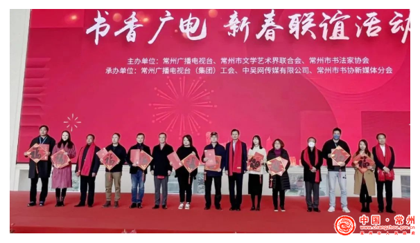 1月11号上午,由常州广播电视台、常州市文联、常州市书法家协会主办的“书香广电 新春联谊活动”在常州现代传媒中心一楼大厅举行。常州广播电视台党委书记、台长黄江,市文联党组书记、主席舒文,市委宣传部原副部长、市书协顾问朱明辉,常州广播电视台副台长许建俊,中吴网传媒有限公司总经理朱卓晓,市书协主席、党委书记陈清,市书协监事会主席徐小平及市书协主席团成员、党委相关领导参加活动。