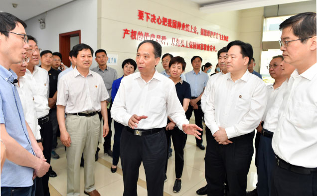 近年来,常州市认真贯彻中央和省关于推进种业创新发展、打好种业翻身仗的决策部署,着力推动种业高质量发展,以市场为导向、企业为主体,逐步构建了育繁、保护、推广一体的特色种业创新发展体系,培育出一批具有自主知识产权的农业新品种,成为全省屈指可数的农业自主育种全产业覆盖地区,形成了独特的种业发展“常州现象”。立华牧业作为全国农业产业化重点龙头企业,自主培育的“雪山鸡”获得国家畜禽新品种(配套系)审定,被列为省重点推广的家禽品种,“江南白鹅”新品种(配套系)成为全国第三个具有自主知识产权的肉鹅新品种,“花山麻鸡”正在申报国家级品种审定。公司年出栏雪山鸡2.89亿只,占全国黄羽肉鸡年出栏量的6%,销售额位居全国第二;江南白鹅年出栏量达220万只,规模化养殖量为全国白鹅类第一。2019年,立华牧业成为全省首家畜禽养殖类上市企业。吉炳轩听取了立华牧业董事长程立力关于企业在畜禽育种创新、循环养殖方面的情况介绍,他勉励立华牧业要为国家种质资源保护和育种创新多做贡献。当他听说立华牧业依靠“公司+合作社+农户”发展模式,不仅实现公司快速增长,还带动众多农户致富时很是高兴,他详细询问了农户在这种模式下的投入、风险、收入情况等,还询问了畜禽粪便是如何处理的。他说,全面推进乡村振兴和高质量发展,要创新农村经济发展方式,支持鼓励发展适度规模经营,要走循环经济之路,带领农户共同致富。