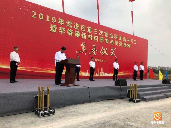 9月26日,2019年武进区第三次重点项目集中开工暨辛格顿新材料研发与制造基地奠基仪式在西太湖举行,32个项目集中开工,总投资70亿元。市委书记汪泉出席活动并讲话,要求武进区坚定不移推进重大项目提质增效,大力弘扬“店小二”精神,进一步创优营商环境,加快集聚更多优质重大项目,全力打造苏南模式转型升级试验区,当好明星城建设排头兵。