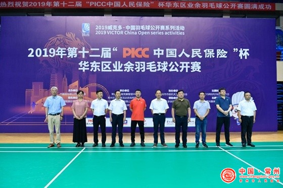 8月29日上午,2019第十二届“PICC中国人民保险”杯华东区业余羽毛球公开赛在常州奥体中心体育馆开幕。比赛由中国羽毛球公开赛组委会主办,常州市体育竞赛管理中心、常州乐天体育活动咨询有限公司、常州奥体场馆管理有限公司龙城分公司、常州市羽毛球协会承办,常州市市级机关工会联合会协办。