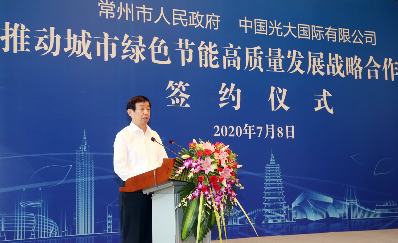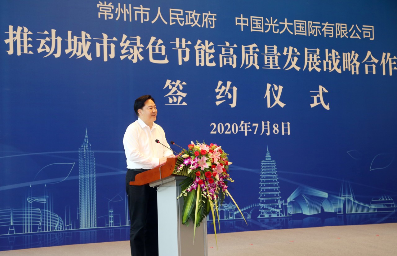 齐家滨在致辞中向光大国际长期以来对常州的支持表示感谢。他说,不负绿水青山,方得金山银山。美丽宜居明星城建设成为“强富美高”新常州的生态标注,环保产业在常州市迎来全新的发展机遇。此次光大国际与常州市政府签订总额超100亿元的战略合作协议,涉及环保、基础设施等多个领域,这是光大国际将常州作为战略布局重点区域的持续加码,是对常州推进“五大明星城”建设的坚定支持,必将为常州市经济社会高质量发展注入新的动能、提供新的支撑。市委、市政府将一如既往地支持光大国际在常州的发展,用最优质的营商环境、最硬核的服务举措,让光大国际在常州发展的根扎得更深、叶长得更茂、花开得更美,也期盼光大国际继续关心常州、支持常州,携手共进、互惠共赢。