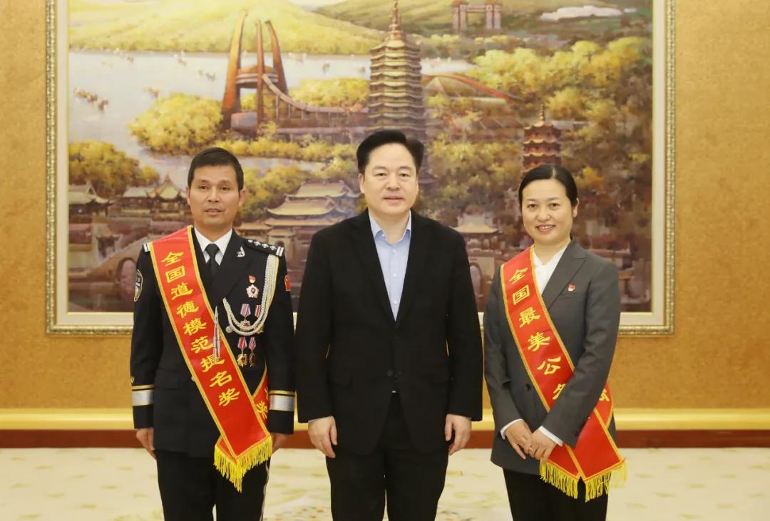 陈金虎说,王颖同志今年被中组部、中宣部评为全国“最美公务员”,是2021年全省唯一获此殊荣的公务员;陆旭东同志获全国道德模范提名奖,这既是两位同志的光荣,也是常州人民的骄傲。