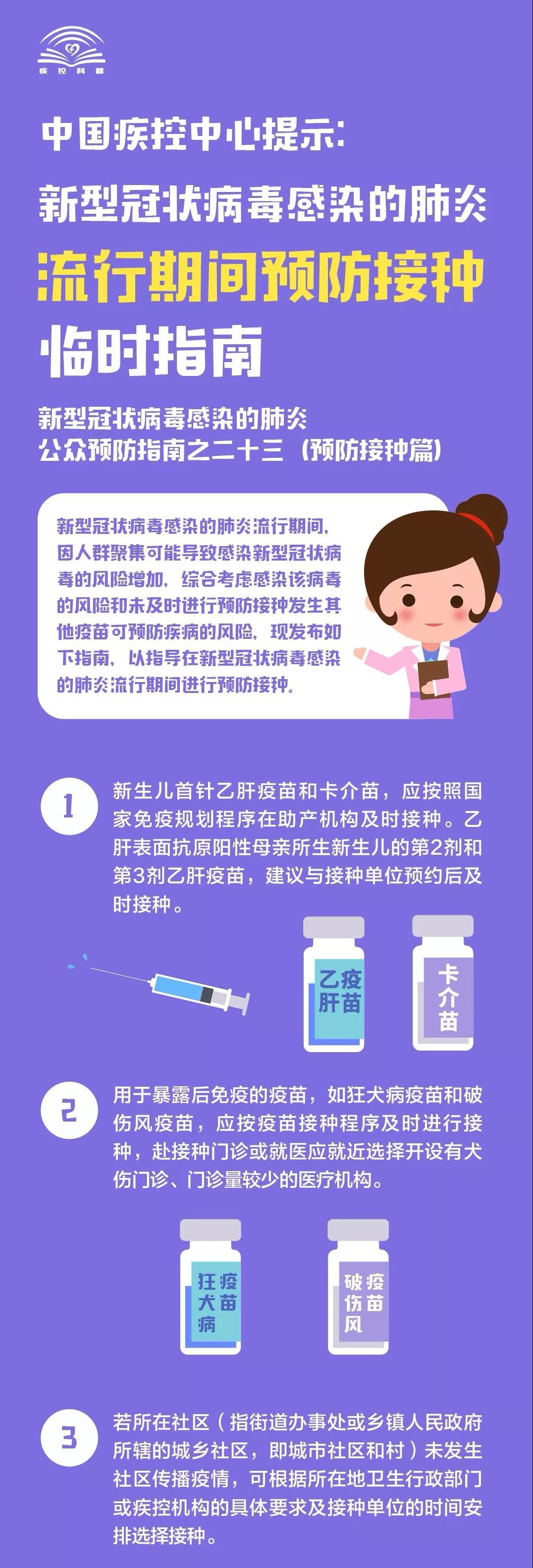 中国疾控中心提示:流行期间预防接种(预防接种篇)