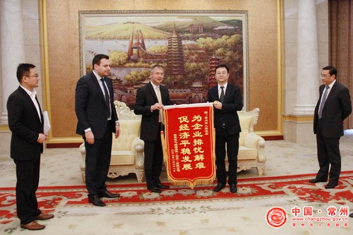 1月24日,市长费高云在市行政中心会见莱尼电气战略事业部高级副总裁、莱尼电气线缆组件(常州)有限公司法人代表沃尔夫一行。