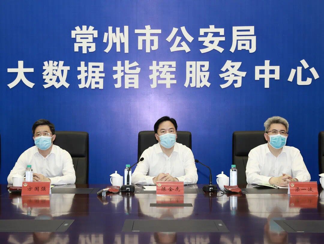 在市公安局大数据指挥服务中心,陈金虎看望慰问一线民警及工作人员,观看常州市疫情防控管理服务平台操作演示,并详细听取了公安机关国庆安保维稳、交通组织、大数据疫情防控等工作汇报。