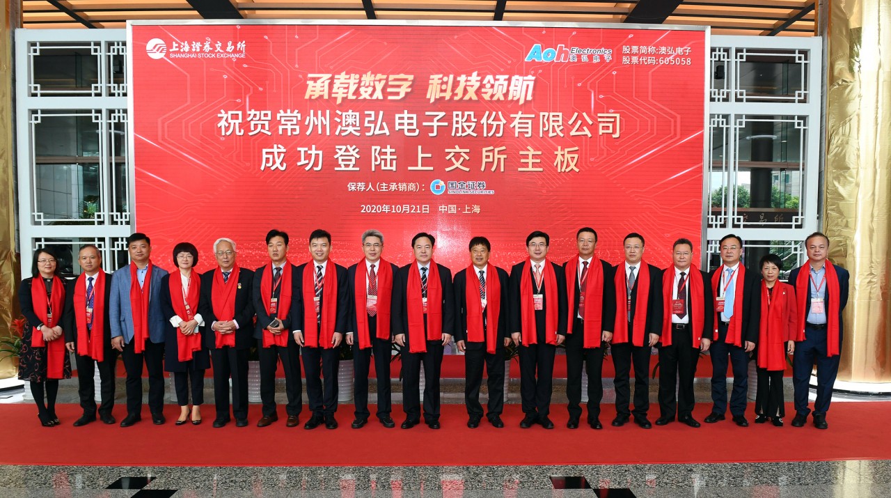上午9点30分,常州澳弘电子股份有限公司成功在上交所主板上市,股票简称为澳弘电子,股票代码为605058。作为一家专业的电子行业生产企业,多年来,澳弘电子始终坚守主业、深耕细作。公司旗下拥有常州海弘电子有限公司、香港昇耀、新加坡昇耀三家全资子公司,拥有澳弘电子与海弘电子两大PCB生产基地, 年产各类印制电路板近400万平方米,产品涉及家用电器、消费电子、电源能源、网络通讯及汽车电子等诸多领域,与海尔集团、海信集团、美的集团等国内外大型知名企业保持着良好的合作关系。