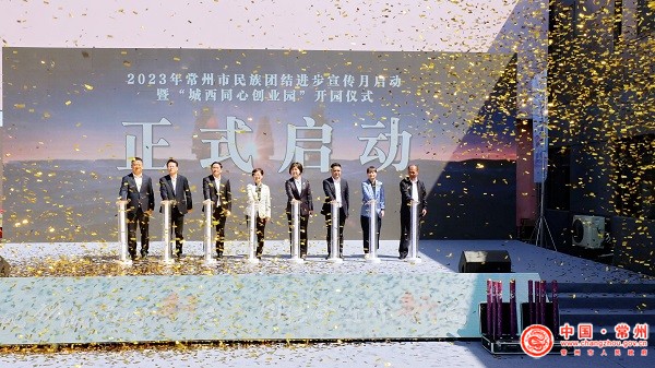 活动中,马连美和杨芬共同为“城西同心创业园”和“铸牢中华民族共同体意识实践基地”揭牌;杨芬宣布2023年常州市民族团结进步宣传月启动。