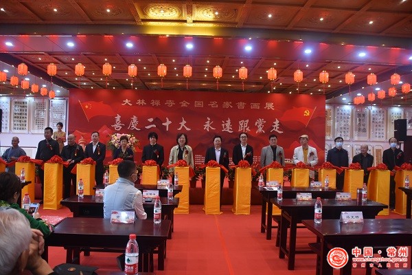 金秋多祥瑞,翰墨颂盛世。10月8日上午,由常州经开区佛协、大林禅寺主办的“喜庆二十大 永远跟党走”全国名家书画展隆重开幕。常州市民宗局副局长许伟树,常州经开区党群工作部副部长、区民宗局局长张军,常州经开区佛教协会会长、大林禅寺方丈、大林书画院院长达胜和众多书画艺术家爱好者出席开幕式并参观书画展。市文联副主席胡军生莅临指导并致辞。