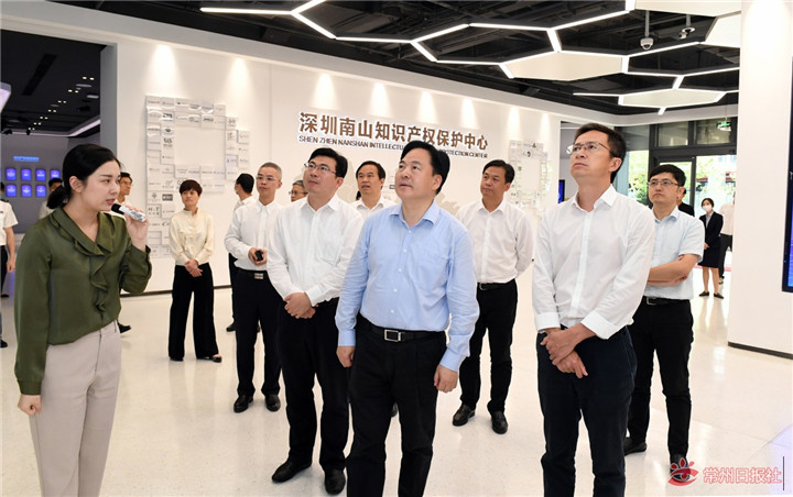 陈金虎一行参观考察了深圳湾科技生态园、深圳南山知识产权保护中心等地。他在与南山区区长黄湘岳交流时表示,常州将深入学习南山区的创新经验,在产业、人才等方面加强合作,促进南山创新优势与常州制造优势充分融合,结出合作共赢的丰硕成果。