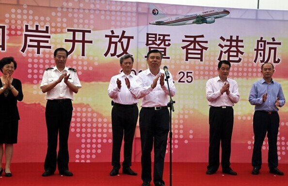 9月25日,常州机场口岸开放暨香港首航仪式在机场停机坪举行。市委书记阎立宣布:常州机场成功首航香港!