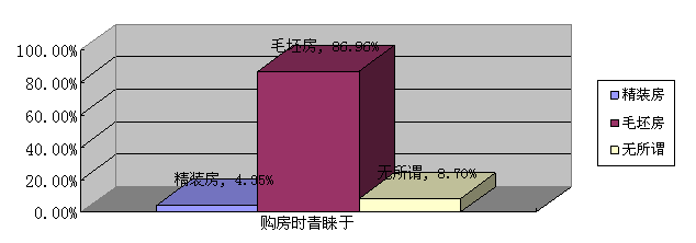 86.96%的网友在“精装房和毛坯房,您青睐哪一种?”中选择了毛坯房,认为毛坯房相比较于精装房,精装房交付过程中更易出现隐藏问题。4.35%的网友选择了精装房,因为觉得精装房相比毛坯房省去装修环节,也有8.7%的网友觉得无所谓。