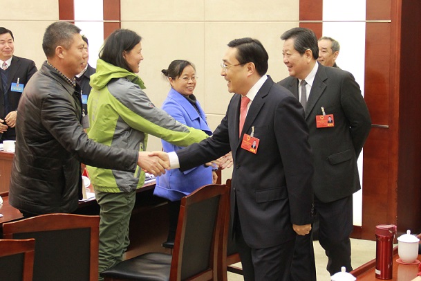 1月11日下午,市长费高云看望了参加市十五届人大六次会议的旁听市民代表。两点钟,费高云走进惠风厅,与几十名市民代表一一握手问候。
