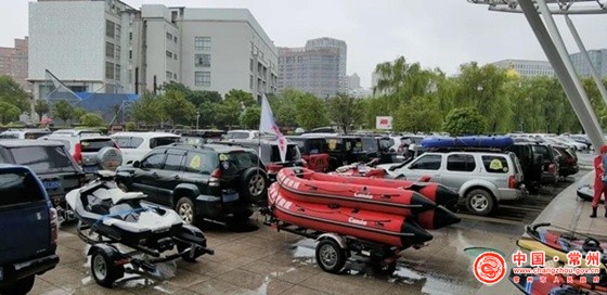 原来,这些越野车车主均来自常州汽摩运动协会,接常州市应急管理局联系,希望协会做好准备,提供救援保障。早上七点不到,接到通知的协会成员便在奥体汇合了。