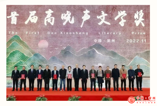 2022年11月11日,由当代著名作家高晓声命名的首届高晓声文学奖颁奖典礼在其故乡常州举行。中国作协党组成员、副主席、书记处书记吴义勤,中国作协副主席、省作协主席毕飞宇,中国作协主席团委员、创研部主任何向阳,省作协党组书记、书记处第一书记、常务副主席汪兴国,省作协党组成员、书记处书记、副主席丁捷,省广电总台党委副书记、总经理周斌,常州市委常委、宣传部长陈志良,副市长蒋鹏举,常州市委宣传部常务副部长汪忠泽、常州市文联党组书记、主席舒文,常州市天宁区人大常委会主任沈月芬、常州市文联领导胡军生、周勇刚、王蓉、吴鸣、孙薇及及省内外著名学者专家丁帆、叶兆言、王尧、王彬彬、黄小初、程永新、张光芒等出席颁奖典礼。常州市委书记陈金虎和市人民政府市长盛蕾代表常州市委市政府看望了获奖作家、颁奖嘉宾和与会专家,并向获奖作家赠送由国家级非遗金坛刻纸传承人杨兆群刻制的作家肖像。