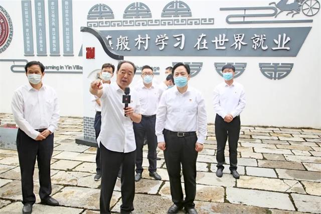 殷村“党聚福殷”小镇客厅融党建引领、宣传展示、协同交流、公共服务于一体,嵌入乡村景致、名人乡贤等元素,打造功能齐全、设备完善的党员活动阵地。陈金虎指出,要通过特色党建载体,充分挖掘传统文化、树立优秀标杆,培育文明乡风、良好家风、淳朴民风,打响职教特色小镇品牌。