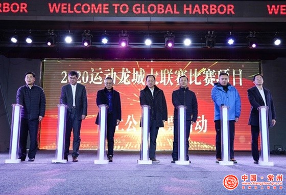 2019运动龙城大联赛已经圆满结束,2020运动龙城大联赛将翻开全新篇章,常州市人民政府副秘书长刘文荣,常州市体育局局长、常州市体育总会主席朱笑冰,常州市人大常委会教科文卫工委副主任郑辉,常州市政协委员工作委员会副主任姜一鸣,常州市体育局副局长、常州市体育总会副主席魏继斌,常州市体育总会副主席、江南农村商业银行行长史文雄,常州市体育总会副主席、江苏中天钢铁集团副总裁李军共同启动2020运动龙城大联赛比赛项目网上公开投票活动。