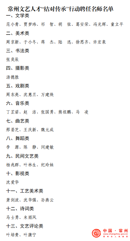 为深入贯彻学习习近平新时代中国特色社会主义思想和党的十九大精神,进一步加强常州文艺人才队伍建设,推动常州文艺高质量发展,市委宣传部、市文联于去年组织实施了常州文艺人才“结对传承”行动。该行动与江苏文艺“名师带徒”计划相衔接,被列为全市文艺人才培育三年行动、十大文艺人才计划之一,主要目标是通过师徒结对的方式,力争通过2-3年时间,重点培养扶持一批常州本土优秀中青年文艺人才,推出一批在全国、全省有影响力的文艺英才和名家。