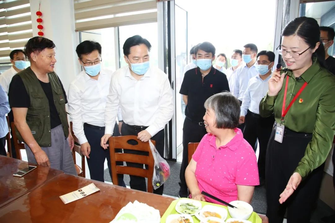 在天目湖镇东陵社区,陈金虎先后走进“学习强国”线下体验馆、如意小食堂、爱心工作站,仔细查看民生保障工作情况。在社区如意小食堂,陈金虎与正在吃午饭的社区群众亲切交谈,了解老人们的感受。如意小食堂是当地探索居家养老模式的创新之举,食堂的创办得到了社会各界的大力支持,有效解决了高龄、空巢老人的吃饭问题。陈金虎指出,民生幸福是初心使命之所系、百姓群众之所盼、“532”发展战略之所向,希望社区干部们扎根社区,做居民群众的贴心人,推出更多的金点子,全力做好“一老一小”群众最牵挂的事,动员社会力量共同参与,切实兜牢兜好民生底线,为打响6张“常有”民生名片贡献力量。