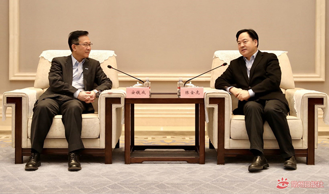 12月17日,武进国家高新区与中国汽车技术研究中心有限公司(以下简称“中汽中心”)签署合作协议书。市长陈金虎在中吴宾馆会见了中汽中心党委书记、董事长、总经理安铁成,双方就建设常州检验中心项目等事项进行深入交流,并共同见证签约。