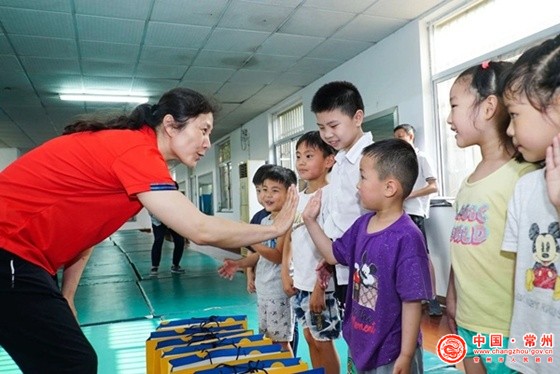 孩子们听说世界冠军来了,还给自己带了儿童节礼物——一份零食大礼包,都一个个激动到双眼发亮,雀跃不止。宋志娟与小运动员们亲切交流,鼓励他们好好训练,还与不少小运动员击掌为盟,拉钩起誓,答应孩子们一定会关注他们的动态。“看到孩子们这么可爱,我也很喜欢的。”宋志娟于2008年退役,她毅然选择了回到常州、回到自己热爱的体育系统中工作,“当年回来,一看到学校的宿舍楼和食堂楼还是记忆中的那个样子,我就特别有感触。”回常州后,宋志娟还会时不时回举重队看看,将自己的训练经验传授给后辈。