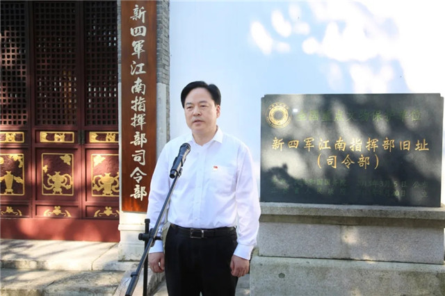 陈金虎指出,80多年前,新四军跨越大江南北,经历千难万险,从极端困难的游击战中建立根据地,到抗日战争中奋战敌后担当主力军,始终为了党和人民的事业英勇奋斗,不惜牺牲一切,为民族解放和革命胜利作出了不可磨灭的贡献。新四军“听党指挥”信仰如铁、“报国为民”担当如铁、“逆境制胜”意志如铁、“集中统一”纪律如铁,最显著的特点集中体现在一个“铁”字上。虽然硝烟已经远去,但新四军铸就的铁军精神永不过时,至今仍闪耀着共产党人初心和使命的光芒,值得我们敬仰学习、传承发扬。