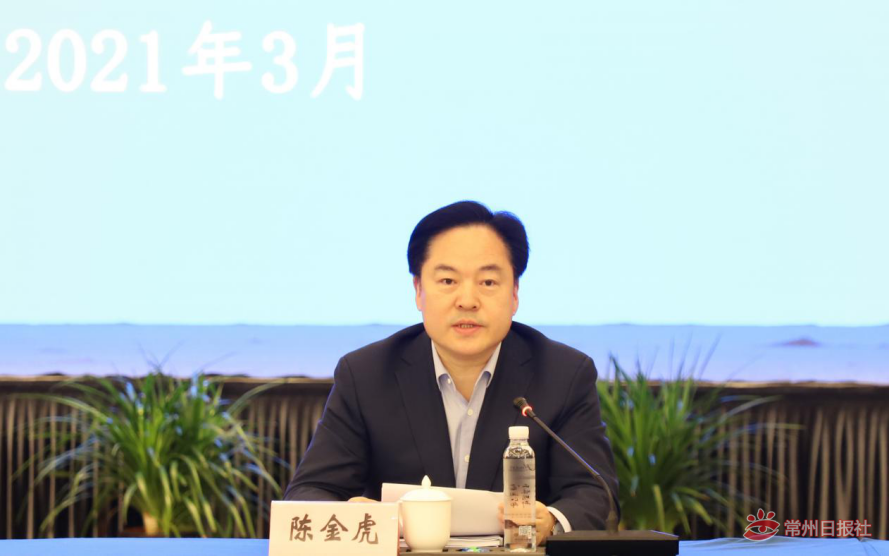 陈金虎在座谈会上致辞,并介绍了常州市经济社会和农业农村发展情况。近年来,常州市以乡村振兴战略为引领,大力推进“1+8+3”乡村振兴工作体系,全市农业农村经济呈现高质量发展的良好态势,建成高标准农田128.4万亩、占耕地面积56.1%,建成设施农业45.5万亩,粮食播种面积稳定在140万亩以上,粮食总产量稳定在13.8亿斤以上;创成省级现代农业产业示范园6个,全市上市和新三板挂牌农业企业4家;4个村庄获评中国美丽休闲乡村,642个村庄建成美丽宜居乡村。