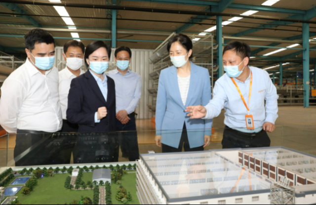 江苏华丽智能科技股份有限公司专注于养殖设备的研发、制造和成套工程的设计、施工、安装等,与国内外诸多行业龙头企业有着长期深入合作。一到企业,盛蕾就与负责人深入交流,在生产车间边看边听,了解疫情防控闭环管理和生产经营情况,以及当前发展中面临的问题。她勉励企业克服困难,准确把握行业发展趋势,动态调整经营策略,进一步稳定国外市场,扩大国内市场。