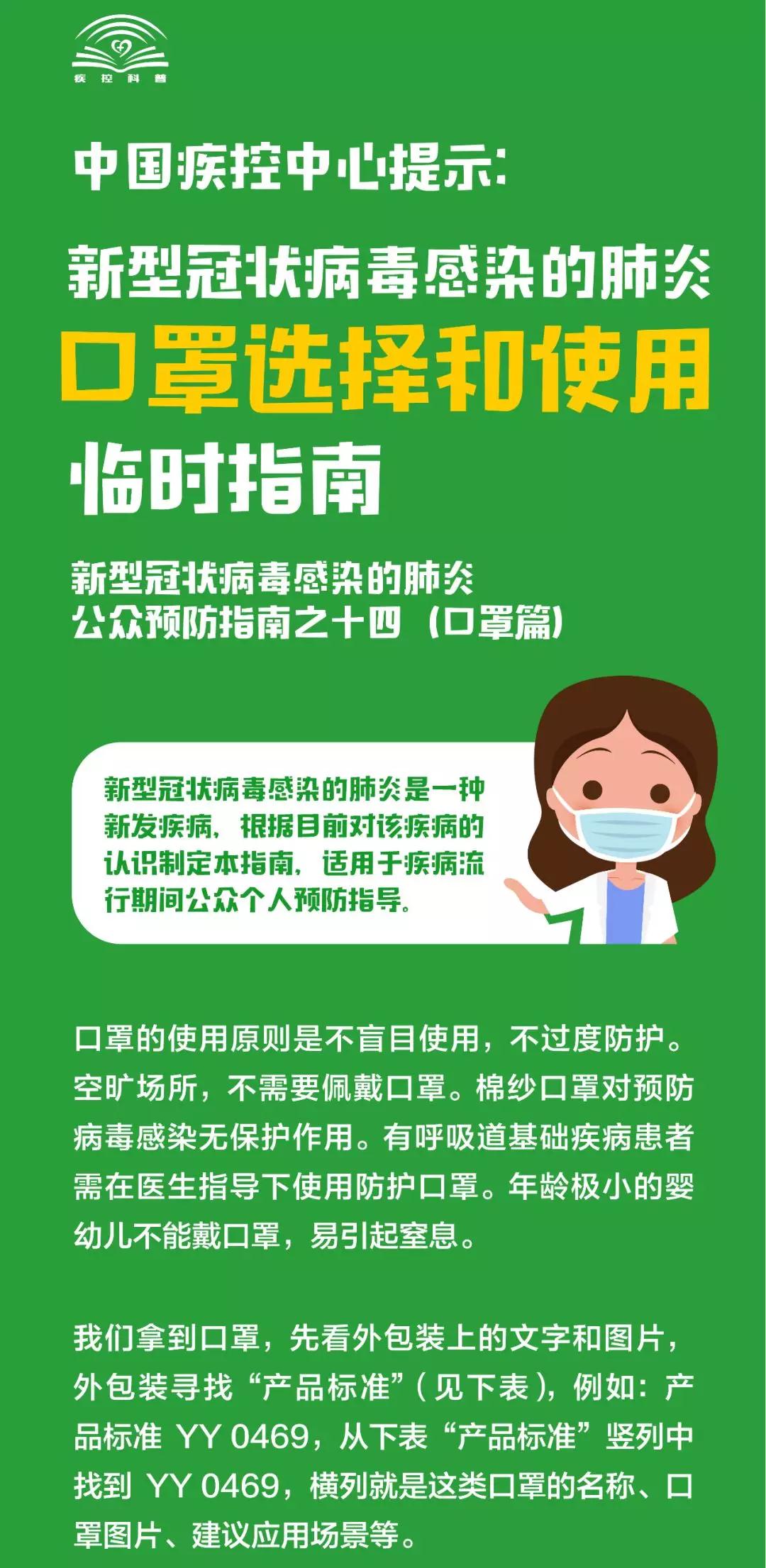中国疾控中心提示:口罩选择和使用(口罩篇)