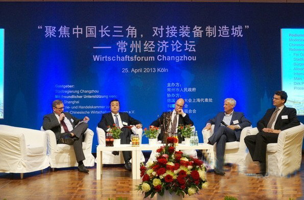论坛上,常州代表团与德国企业、科隆工商会、德中经济联合会等互动交流。费高云就常州如何促进职业教育、保护知识产权和两地工业领域如何加强合作等问题,现场作了精彩解答。