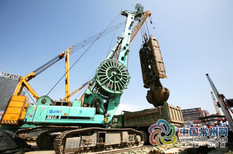 5月13日,在文化宫站施工现场,一台成槽机深入地下开始开挖,标志着地铁1号线最大的车站正式开始地下连续墙施工。