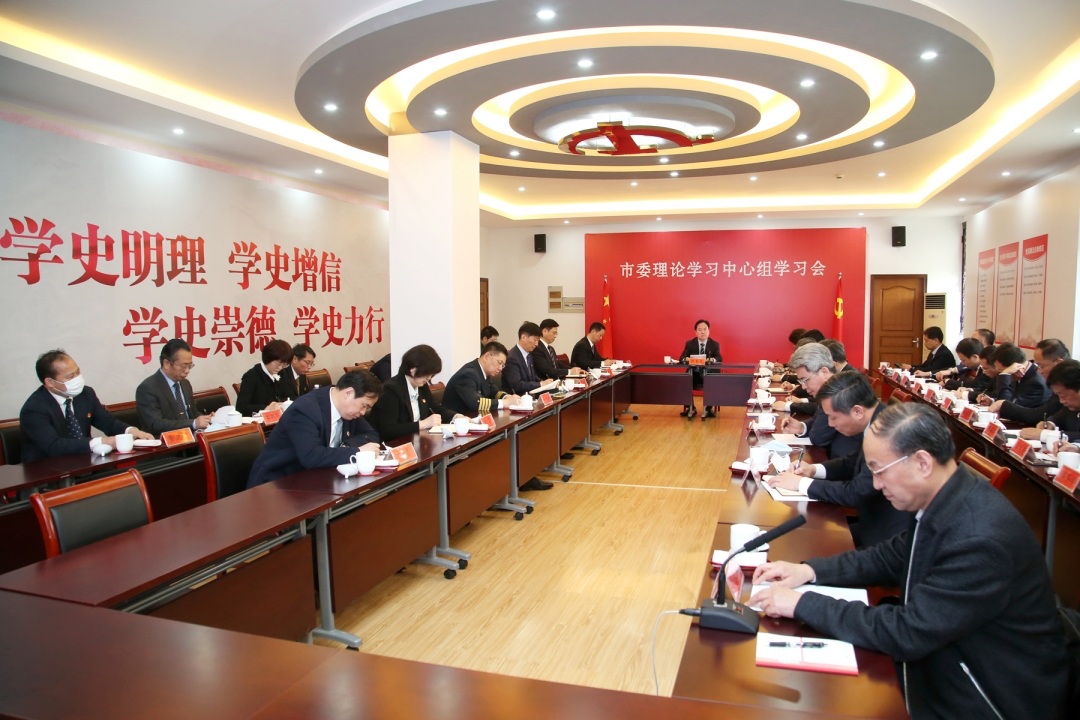 陈金虎强调,党史学习教育贯穿全年,要进一步夯实理论之基、走深走实。要以全面学习党史为重点,深入了解党的百年奋斗史,深化对马克思主义中国化成果,特别是习近平新时代中国特色社会主义思想这一当代中国马克思主义、21世纪马克思主义的理解。要不断深化对党的历史的系统把握,明确继承传统、立足当前、开创未来的实践要求。要坚持集中学习和自主学习、规定动作和自选动作相结合,因地制宜开展特色鲜明、形式多样的学习教育,引导全市党员领导干部从党的辉煌成就、艰辛历程、历史经验、优良传统中感悟初心使命、汲取智慧力量,不断提高政治判断力、政治领悟力、政治执行力。