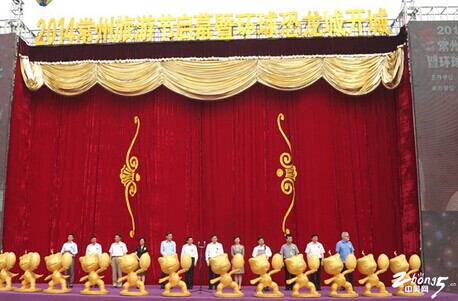 6月28日上午, 在常州市人民政府费高云市长的宣布下,2014“激情之夏”常州旅游节在环球恐龙城隆重开幕。此次盛会有国家旅游局、省市领导、环球恐龙城特邀嘉宾、媒体记者及现场游客共3000多人共同见证。而环球恐龙城也同步华彩开城,全新的幸福门气势磅礴,靓丽的色彩更具恐龙王国的童话色彩。