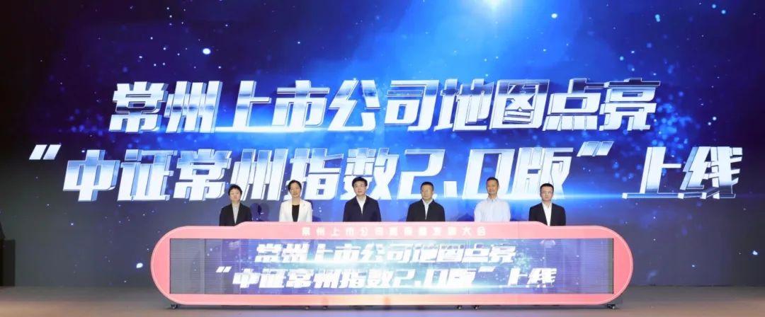 盛蕾、巩海滨、唐理斌,以及上海证券交易所市场发展部副总监万建强、深圳证券交易所江苏区域主任黄丽娜、北京证券交易所华东基地主任石富元一起,共同发布中证常州指数2.0版,并点亮常州上市公司地图,为全市资本链、产业链、创新链融合发展提供直观依据和正向反馈。