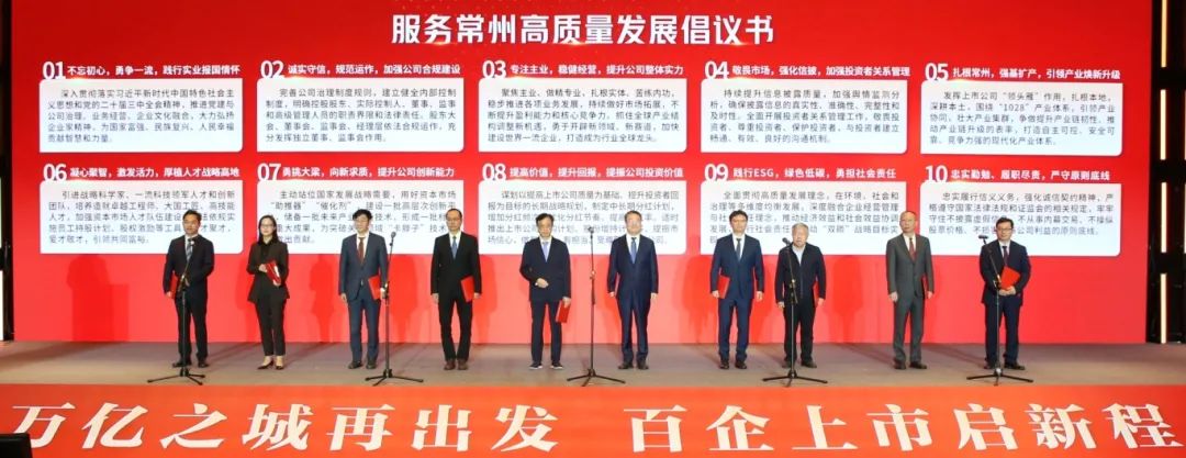 苏常柴、恒立液压、中简科技、华润材料、聚合材料、立华股份、江苏雷利、天目湖、泛亚微透、瑞华技术等上市公司董事长集体发布了《服务常州高质量发展倡议书》。