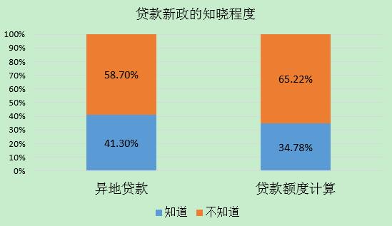 4.职工对于我市住房公积金贷款新政的了解程度并不高。自2019年7月1日起,我市开始实施最新的贷款额度计算规则,并且开始实施异地贷款政策。这对广大住房公积金缴存职工来说是比较重要的政策变化,但是有超过半数的职工并不知情,41.3%的职工知道我市即将实施异地贷款政策,34.78%的职工知道贷款额度计算规则即将调整。