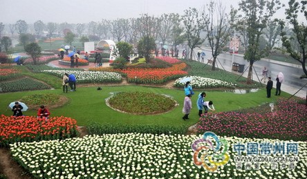 3月29日上午,常州市首届郁金香节在中国花卉博览园开幕。尽管春雨时落时止,仍有1.6万游客入园赏花。