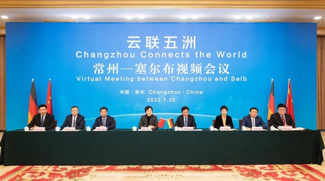 继2021年12月,常州市首次与德国迪伦堡在线上开展“云招商”以来,“云联五洲”已成为新的招商品牌活动。1月25日下午,第二场“云联五洲”常州-塞尔布视频会议举行,进一步深化常州与德国塞尔布之间的交流合作。代理市长盛蕾与在德国会场的当地工商企业界人士共叙友情、共商合作、共话未来。