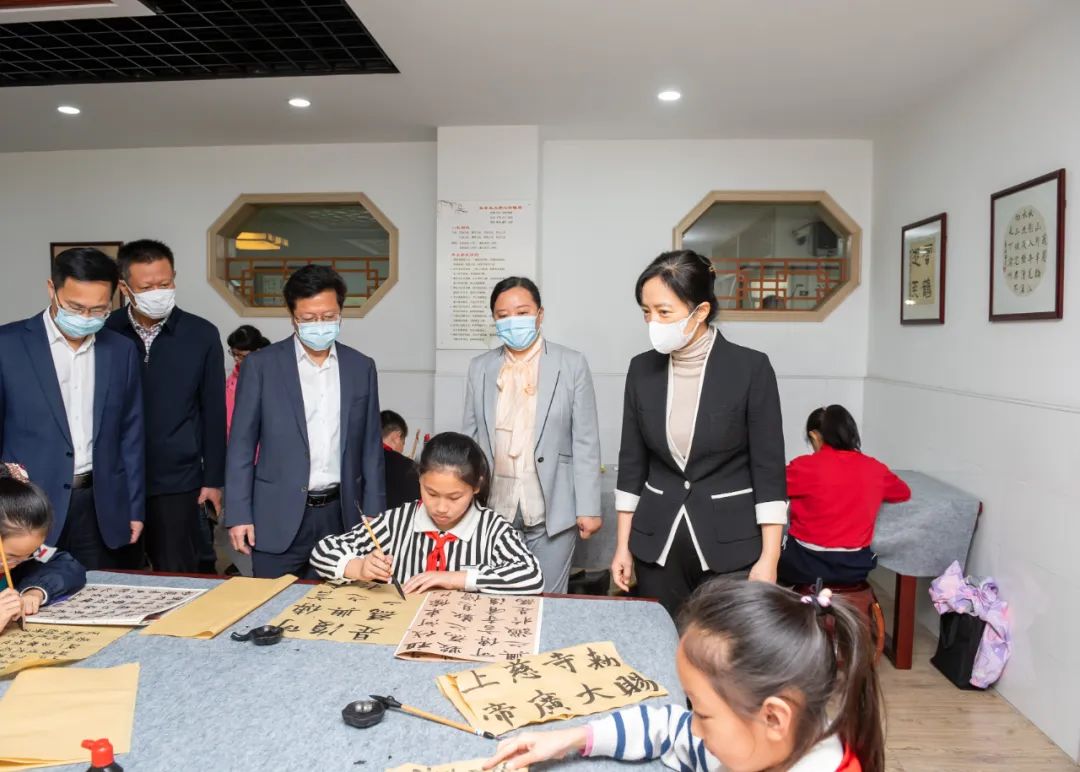 盛蕾一行还来到清潭实验小学,与师生深入交流,了解学校特色艺术课程、融合教育等开展情况,希望学校进一步整合德育资源,培养学生良好的生活习惯、学习习惯、文明习惯及道德品质,让校园成为孩子们成长的乐园。