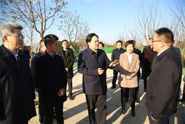 陈金虎首先来到基层党支部工作联系点--邹区镇杏塘。邹区镇殷杏泰产教融合试验区涵盖殷村、杏塘、泰村三个行政村,以国土空间全域综合整治为切入点,实施基本农田调整和国土空间整治,设置集中居住点,不断优化基础设施配套。试验区农村集中居住区提升改造工程于今年正式开工建设,涉及农户833户。陈金虎边走边看,详细询问工程进度、周边配套设施、村民反响等情况,充分肯定试验区不断优化基础设施配套,推进全域美丽乡村建设的做法。陈金虎说:“今年6月我曾到杏塘村调研,时隔半年,很高兴看到规划图上的项目正快速变为现实模样。”陈金虎希望当地进一步利用好殷村职教小镇的教育产业优势,大力探索宅基地改革,从根本上改善农村人居环境。要围绕“两湖”创新区建设,积极引进现代农业、乡村旅游等一二三产融合项目,招引更多乡村振兴所需的专业人才,打造农村生产集约高效、农居生活特色传承、生态空间山清水秀的特色样板。各级党委政府要从政治上关心、工作上支持、待遇上保障广大村干部,持续加强基层带头人队伍建设,努力把党的政治优势、组织优势、联系服务群众优势转化为基层治理效能。