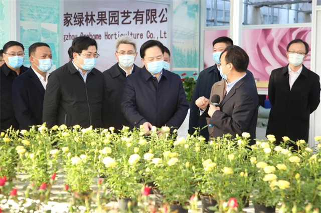产业兴旺是实现乡村振兴的前提和基础。作为全国十佳花木种植企业,常州家绿林果园艺有限公司建设占地200亩、12万平方米的玻璃智能温室、自动播种流水线、盆花种植流水线等,引育筛选来自荷兰、以色列等多个国家的有机番茄、黄瓜、草莓等多个蔬菜花卉新品种种植,连续多年销售额以每年20%的速度增长。企业采用潮汐式自动灌溉系统,仅3个小时就能将200万盆花卉盆栽浇灌完毕。陈金虎走进企业培育有机番茄的智能温室,实地了解繁种、育苗、栽培等,询问收获期、销路、价格以及带动农民增收等情况。他说,发展智慧农业,一头连着农民的“钱袋子”,一头连着居民的“菜篮子”,大有可为。希望企业坚持科技兴农、绿色兴农、品牌强农,充分发挥龙头企业示范带动作用,进一步健全生产、加工、仓储、物流等全产业链,努力把小番茄做成大产业,在推进农业增效的同时大力带动周边农民增收,打造智慧农业“常州品牌”。