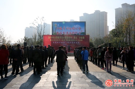 11月9日上午,2018年全国健步走大联动常州新北分会场暨江苏省老年人体育节闭幕式新北区分会场活动在常州市新北区春江镇民俗公园举行。来自春江镇200多名老年人参加健步走大联动活动。新北区老年人体协主席李兴根宣布全国老年人健步走大联动江苏常州新北区分会场启动。