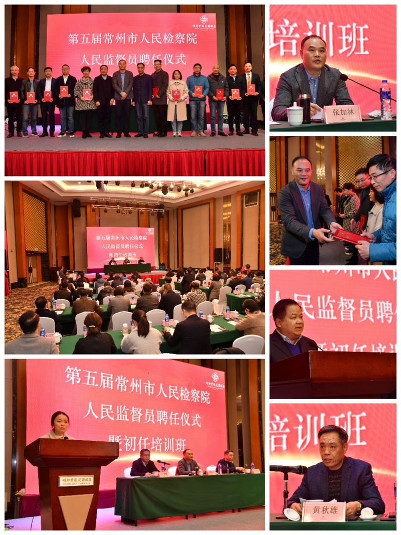 11月26日,常州市司法局、市检察院联合举办第五届常州市人民检察院人民监督员聘任仪式暨初任培训开班仪式,培训班上市司法局领导宣读聘任决定,两位人民监督员代表作了发言,邀请专家学者对初任人民监督员进行了授课。