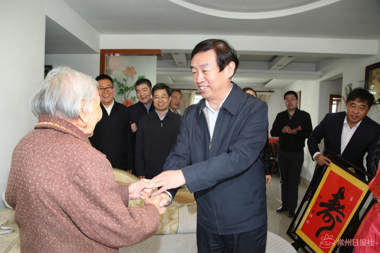 截至2019年底,常州市60周岁以上户籍老人有93.79万,其中百岁老人385人。走访中,齐家滨要求各级党委政府坚持以人民为中心发展思想,切实加快老龄事业发展步伐,多为老年人办实事、办好事;重视他们的意见建议和诉求,积极发挥老年人言传身教的作用,让老年人老有所学、老有所乐、老有所为。同时,要在全社会大力弘扬孝老爱亲美德,让尊老敬老爱老助老蔚然成风。