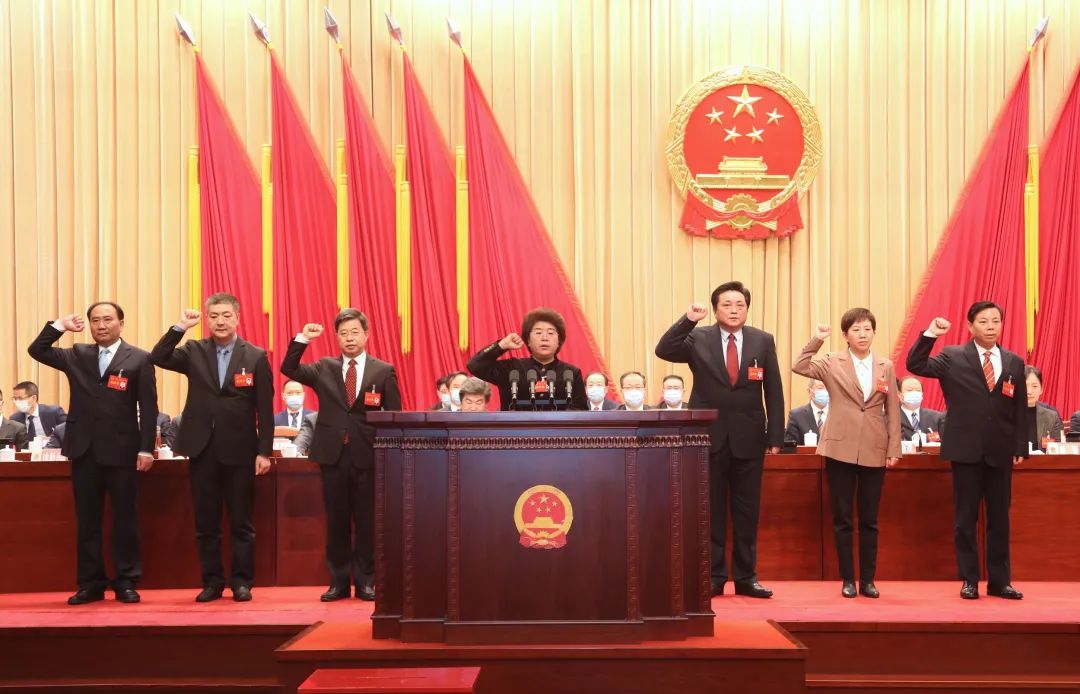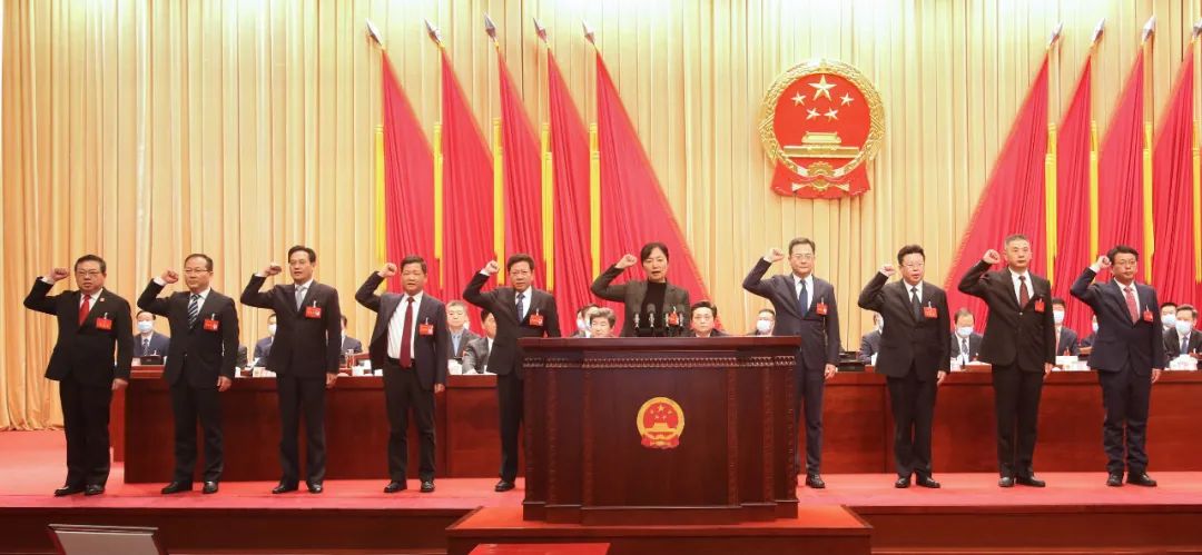 随后,大会举行宪法宣誓仪式。新当选的人大常委会主任、副主任、秘书长集体进行宪法宣誓,领誓人白云萍。新当选的市长、副市长,市监察委员会主任,市中级人民法院院长集体进行宪法宣誓,领誓人盛蕾。