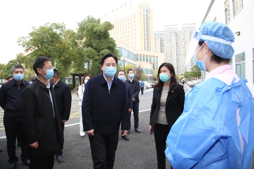 在市妇幼保健院,陈金虎先后查看发热门诊和封控区、“黄码”孕产妇专用通道,了解相关人员就诊和管控措施落实情况,强调要规范就诊流程,完善早发现、早报告、早隔离、早治疗的快速反应机制,确保及时发现、快速处置、精准管控,坚决守住“零院感”底线。