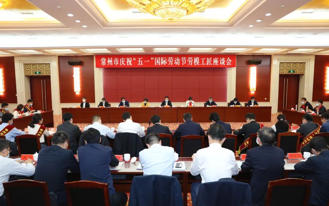 4月28日下午,常州市召开庆祝“五一”国际劳动节劳模工匠座谈会,深入学习贯彻习近平总书记致首届大国工匠创新交流大会贺信精神,动员和号召全市广大职工群众以劳动模范为榜样,用劳模精神激发干劲、用劳动精神鼓舞士气、用工匠精神凝聚力量,积极投身“532”发展战略,在苦干实干中比学赶超、建功立业,为打造“国际化智造名城、长三角中轴枢纽”作出新的更大贡献。